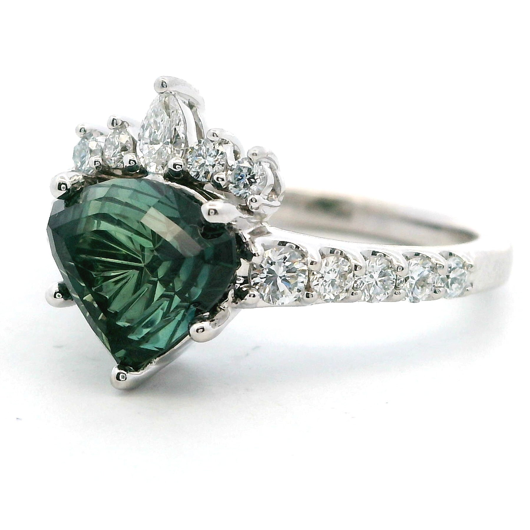 2CT Sapphire Fantasy Cut With Diamond Accents 14KT White Gold Ring