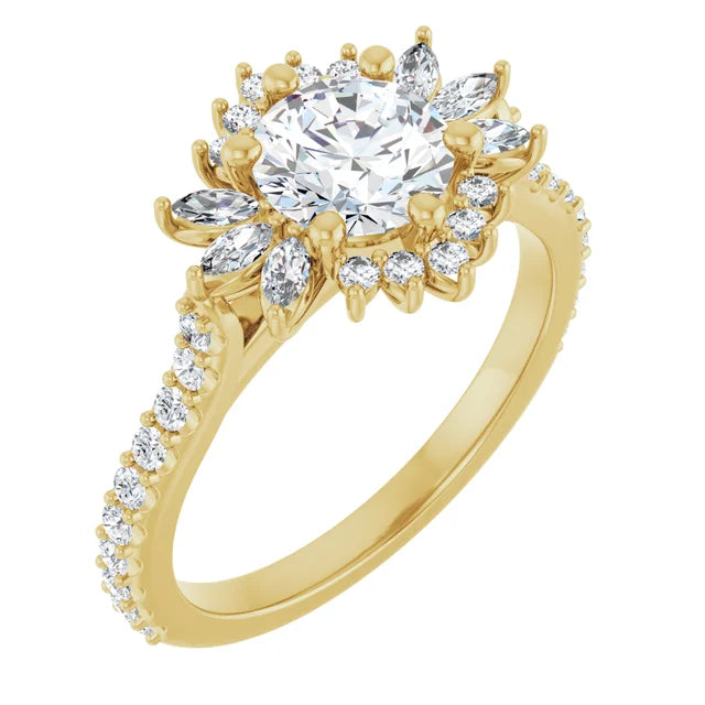1.00CT Marquis Diamond with Halo 14KT Gold Ring (Center Stone Not Included)