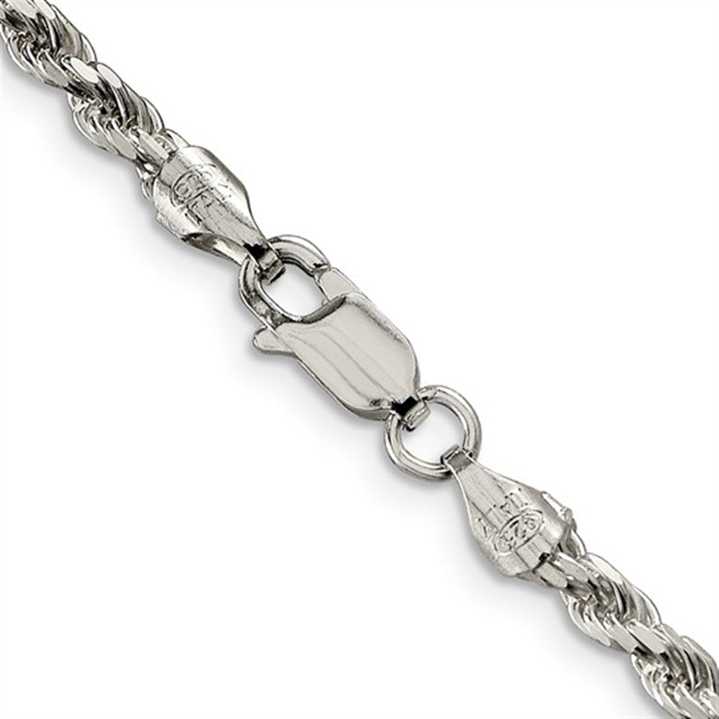 Rope Link Chain 3MM Wide .925 White Finish 26" Long